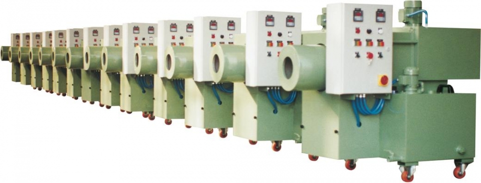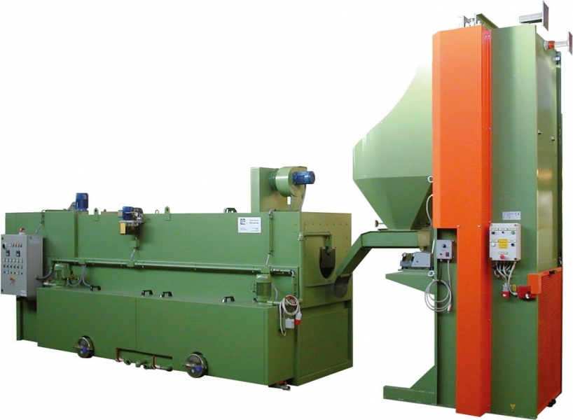 • Machines consisted by an automatic continuous transport of the pieces through an endless stainless steel or alternatively "moplen";