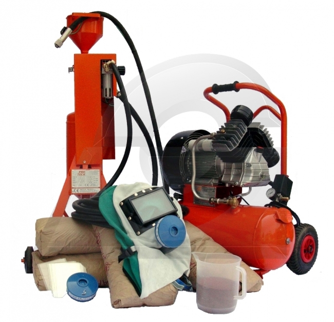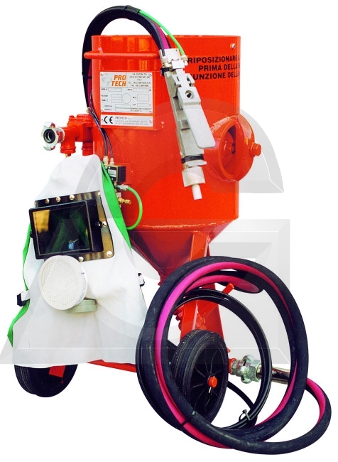 Todas as cubas de decapagem PROTECH de jacto livre podem ser completadas com mangueira de abrasivo, bico de decapagem e capacete ou mascara de protecção para decapagem.