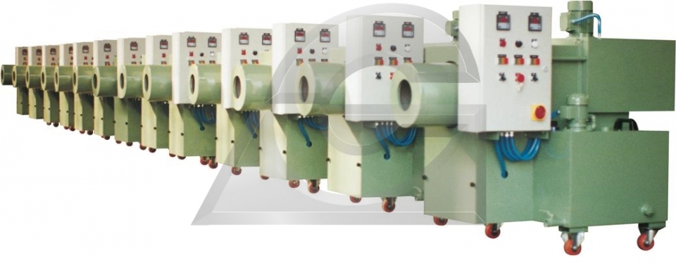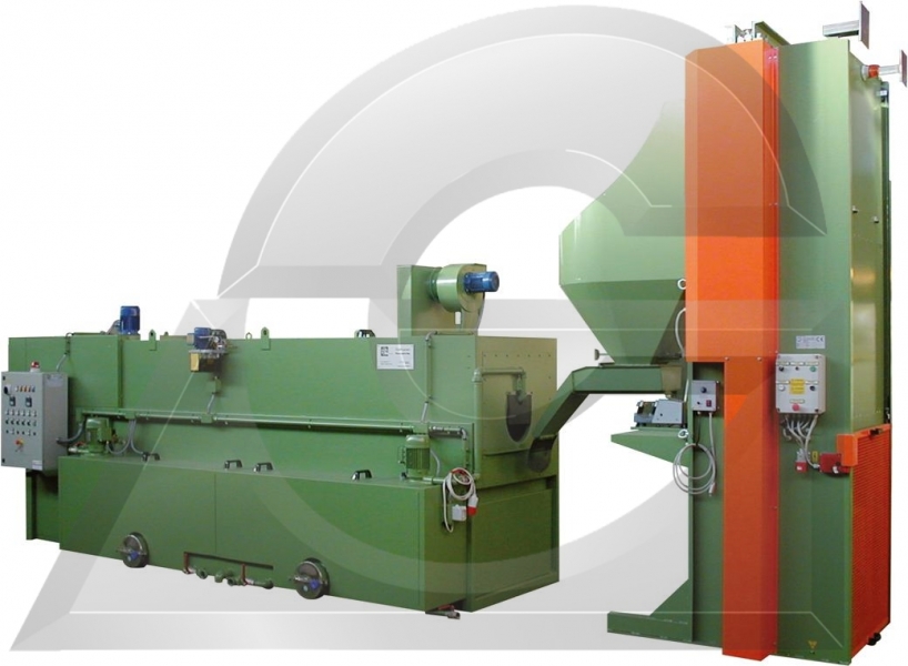 Máquinas constituídas por um sistema automático de transporte das peças em contínuo, através dum sem-fim em aço inox ou em moplen;